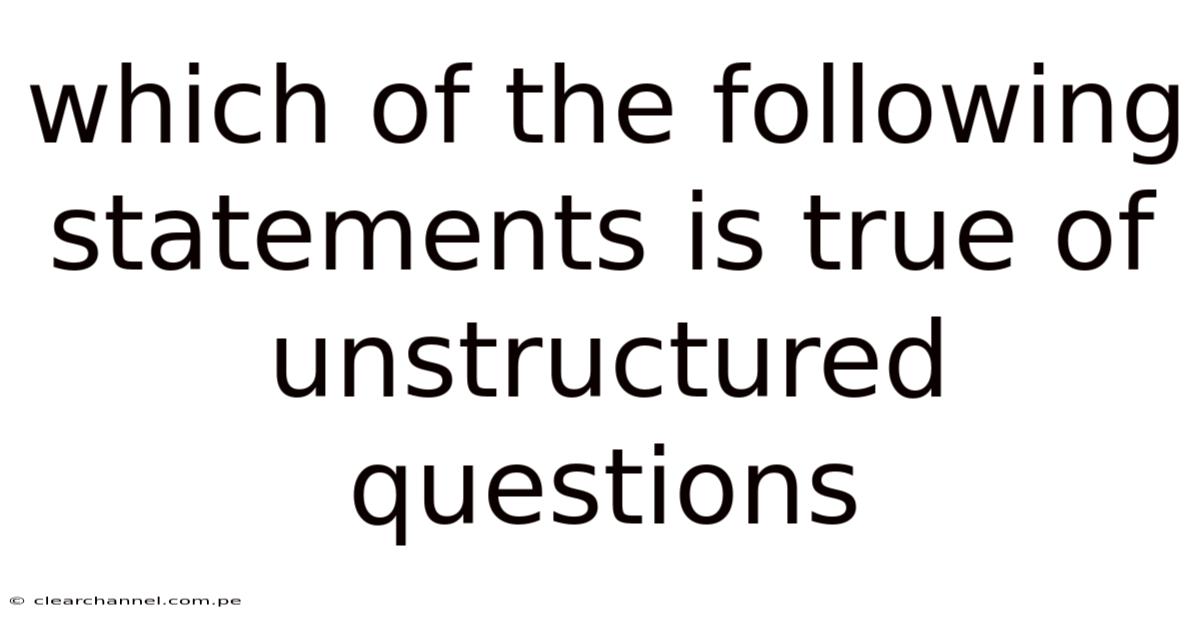 Unstructured questions are a cornerstone of qualitative research, classroom discussions, and many forms of assessment that aim to probe deeper than a simple yes‑or‑no answer. When you encounter a list of statements about unstructured questions, identifying the true one requires a clear grasp of their defining characteristics, advantages, and limitations. This article breaks down the concept of unstructured questions, examines common misconceptions, and pinpoints the statement that accurately reflects their nature But it adds up..