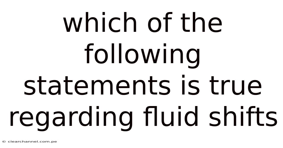 Fluid shifts, a fundamental concept in physiology and medicine, refer to the movement of body fluids between different compartments within the body. Consider this: these shifts are crucial for maintaining homeostasis, the stable internal environment necessary for optimal bodily functions. Understanding which statements are true regarding fluid shifts is essential for anyone studying health sciences, medical professionals, or individuals interested in the intricacies of the human body. This article looks at the truth behind various statements concerning fluid shifts, providing a comprehensive understanding of this complex topic And that's really what it comes down to. Less friction, more output..