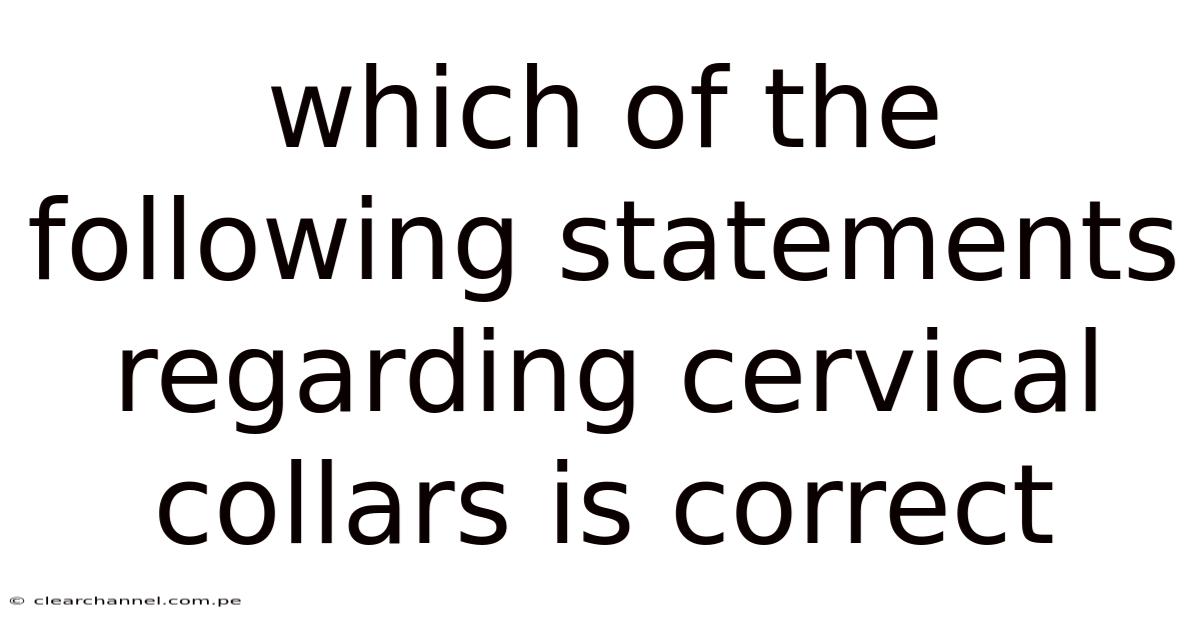 Cervical collars are essential devices in emergency medicine, sports medicine, and orthopedic care. Understanding which statements about cervical collars are correct is crucial for healthcare professionals, first responders, and anyone involved in patient care. This practical guide will clarify the most important facts about cervical collars, their proper use, and common misconceptions that persist in clinical practice Still holds up..
