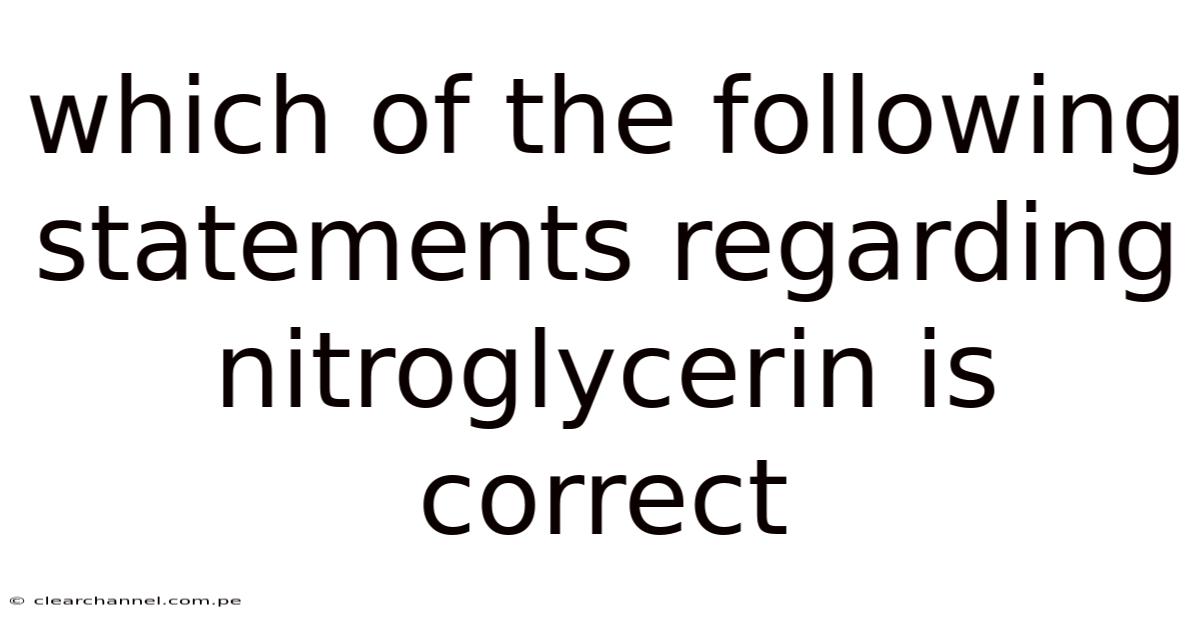 Nitroglycerin (glyceryl trinitrate) is a compound that instantly conjures two very different images: the explosive power of dynamite and the life‑saving relief of an angina tablet. This dual identity often leads to confusion, especially when students, healthcare professionals, and even the general public encounter statements about its pharmacology, chemistry, and clinical use. Practically speaking, the purpose of this article is to untangle those misconceptions and clearly identify the single statement that is correct among the most common claims. While several assertions contain a grain of truth, only one fully captures nitroglycerin’s essential nature as a vasodilator used to treat acute and chronic coronary artery disease.