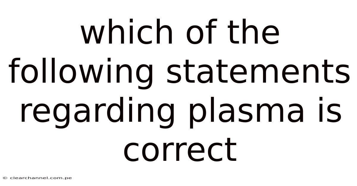 Which of the Following Statements Regarding Plasma Is Correct: A thorough look
