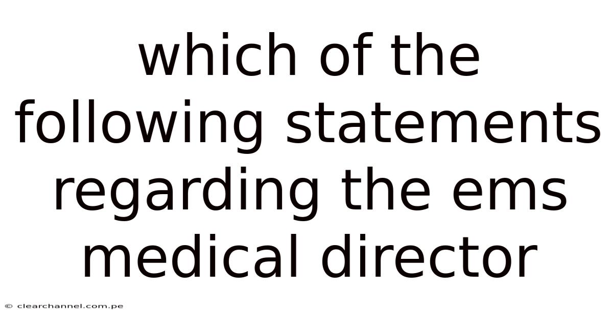 The role ofthe Emergency Medical Services (EMS) Medical Director is fundamental to the effectiveness, safety, and quality of emergency medical care delivered within a community. This position acts as the crucial bridge between clinical medicine and the operational realities of pre-hospital care, shaping policies, protocols, and standards that guide every response. Understanding the core responsibilities and the impact of their decisions is vital for appreciating how robust EMS systems function. Let's examine key statements concerning this pivotal role and discern which accurately reflect its true nature.