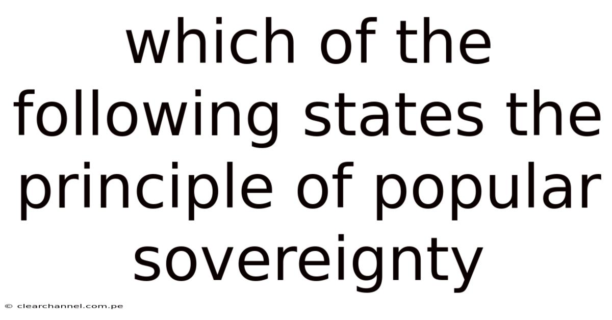 Popular sovereignty is a foundational concept in modern democratic theory, asserting that the ultimate authority of a government derives from the will of the people. Day to day, this principle, first articulated during the Enlightenment and crystallized in the political revolutions of the 18th and 19th centuries, continues to shape constitutions, electoral systems, and public policy worldwide. When faced with a multiple‑choice question asking, “Which of the following states the principle of popular sovereignty?,” the correct answer will be the statement that explicitly places political power in the hands of the citizenry rather than in a monarch, aristocracy, or divine right And it works..
