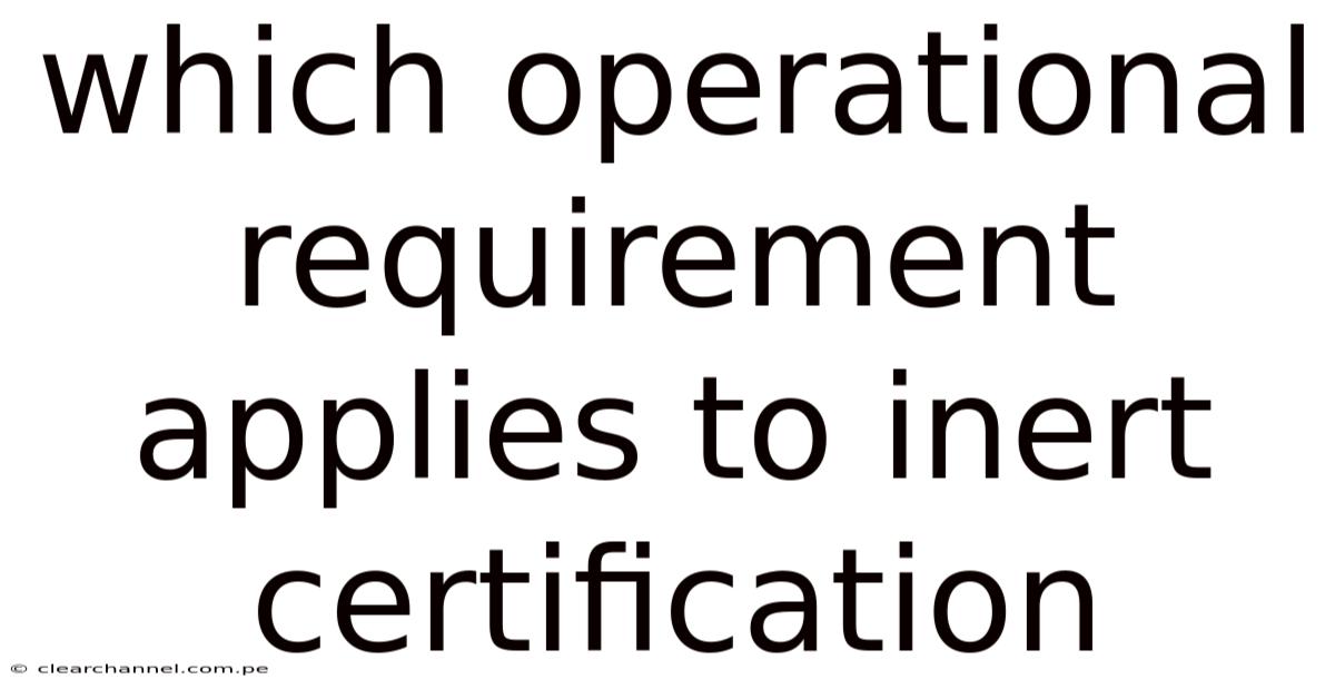 Operational Requirement for Inert Certification: Understanding the Core Standards