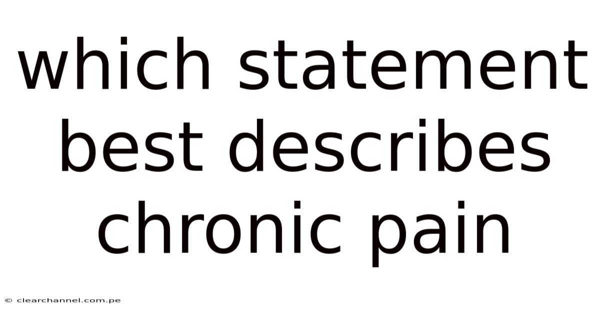 Boiling it down, the statement that best describes chronic pain is that it is pain extending beyond the normal healing period, often lasting for months or years, and characterized by complex neurological changes. Practically speaking, it is a distinct medical condition with profound physical, emotional, and social implications. Worth adding: moving beyond the simplistic view of pain as a mere symptom, we must recognize chronic pain as a disease that requires a comprehensive, multidisciplinary approach to treatment. That's why by understanding its persistent nature and underlying mechanisms, individuals and healthcare providers can work together to develop effective strategies for management, ultimately aiming to restore function and improve the quality of life for those affected. The journey with chronic pain is challenging, but a clear understanding of its definition is the essential first step toward effective coping and healing.