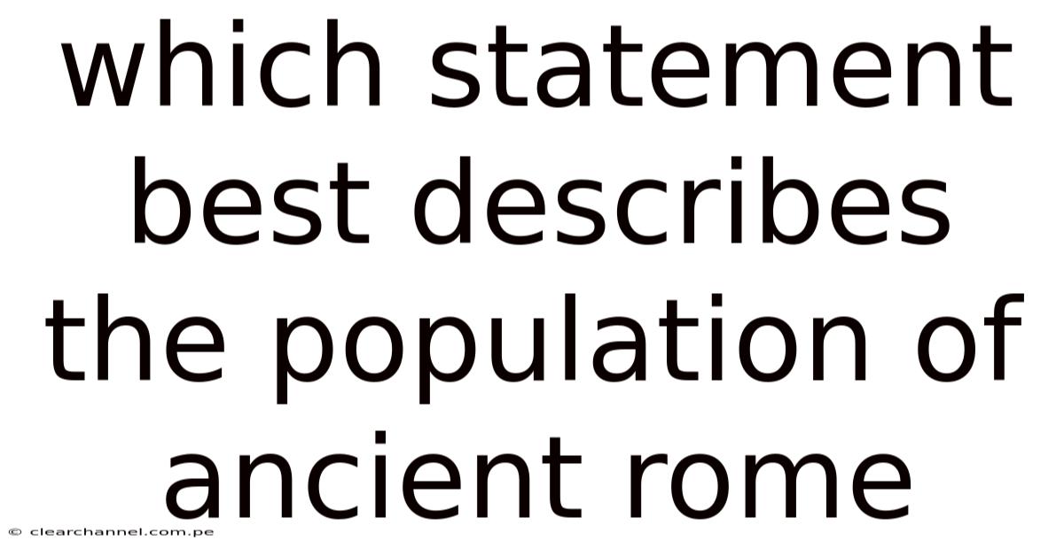 The statement that best describes the population of ancient Rome is that it was a highly stratified, cosmopolitan, and demographically complex society that evolved significantly over time. From a small city-state to a vast empire encompassing tens of millions of people, Roman society maintained a distinctive hierarchical structure while absorbing diverse populations from across the known world.