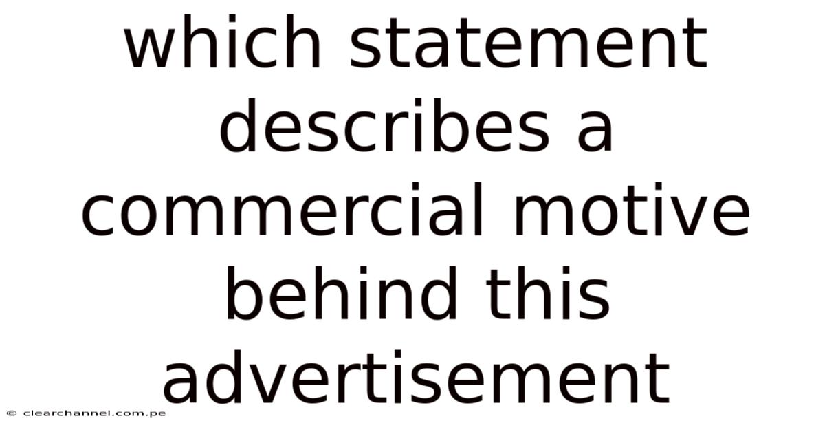 Understanding the commercial motive behind this advertisement is crucial for consumers navigating today's media landscape. Every ad we encounter serves a purpose beyond simply informing us about products or services. In real terms, at its core, advertising exists to drive business objectives, primarily increasing revenue and market share. Recognizing these commercial motives empowers consumers to make more informed decisions and develop critical thinking skills when evaluating marketing messages. This article explores how to identify commercial motives in advertisements, the statements that reveal these intentions, and why this understanding matters in our daily lives.