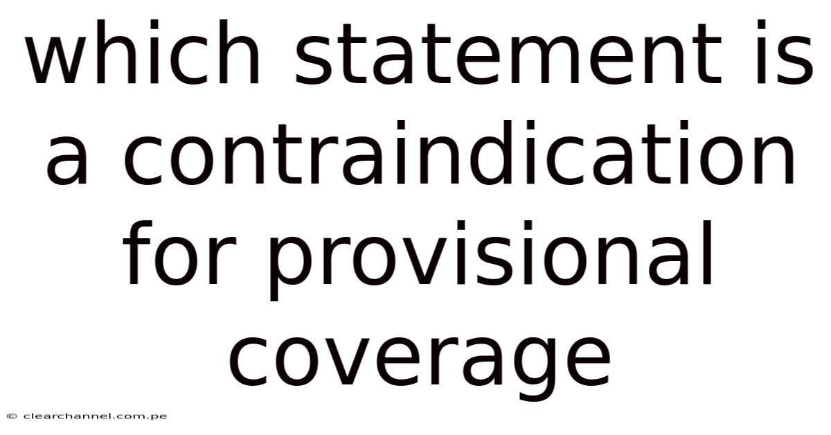 The nuanced interplay between medical necessity, ethical considerations, and clinical guidelines defines the boundaries of provisional coverage in healthcare. In moments where immediate intervention is critical yet definitive evidence remains elusive, provisional coverage emerges as a key tool, allowing temporary safeguards while awaiting further clarification. So yet, this approach is not without its complexities, requiring careful evaluation to ensure it aligns with patient safety, legal obligations, and institutional protocols. Understanding the rationale behind certain statements that serve as contraindications for provisional coverage is essential for professionals navigating this delicate balance. Such contraindications often stem from a confluence of factors, including insufficient data, conflicting expert opinions, potential risks to patient outcomes, or violations of established standards of care. In real terms, recognizing these pitfalls enables practitioners to avoid missteps that could compromise care quality or legal standing. Consider this: this article gets into the multifaceted nature of contraindications, offering insights into why specific claims or assumptions must be scrutinized before being deemed acceptable as a basis for provisional coverage. By examining these nuances, healthcare providers can make informed decisions that prioritize both immediate and long-term patient welfare, ensuring that provisional measures are both justified and responsibly applied.