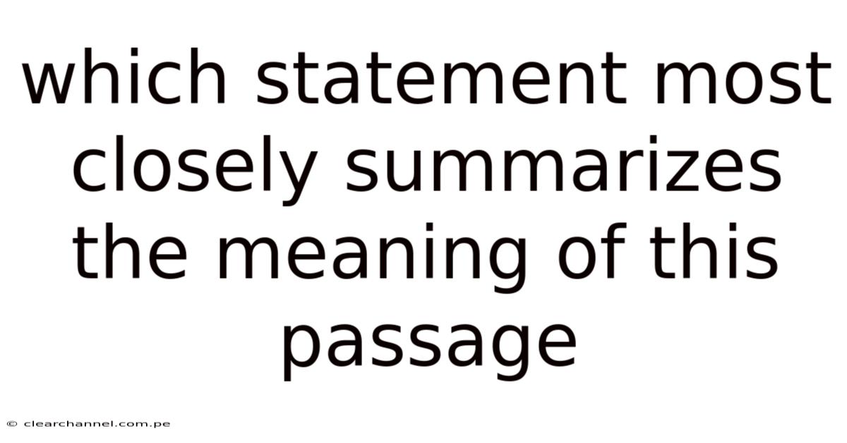 Why It Matters Being able to answer which statement most closely summarizes the meaning of this passage is more than a test‑taking trick; it trains you to: