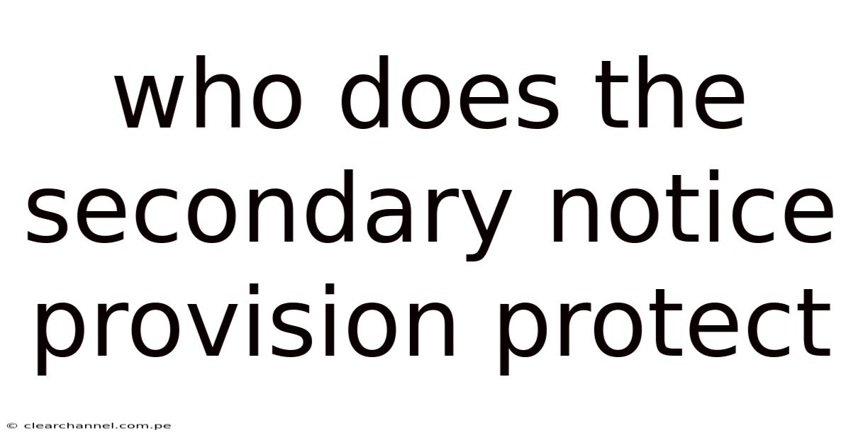The secondary notice provision represents a critical mechanism within modern corporate governance frameworks and financial regulations, designed to ensure transparency, fairness, and accountability in capital markets. At its core, this provision mandates that specific notifications must be disseminated through established channels before certain actions can proceed, thereby preventing unilateral decisions that could disadvantage interested parties. Think about it: this legal instrument primarily functions as a safeguard for various parties involved in corporate transactions, particularly when companies seek to communicate material information to shareholders or the public. Understanding who does the secondary notice provision protect requires examining its application across different contexts, including mergers and acquisitions, shareholder rights, regulatory compliance, and investor protection Less friction, more output..