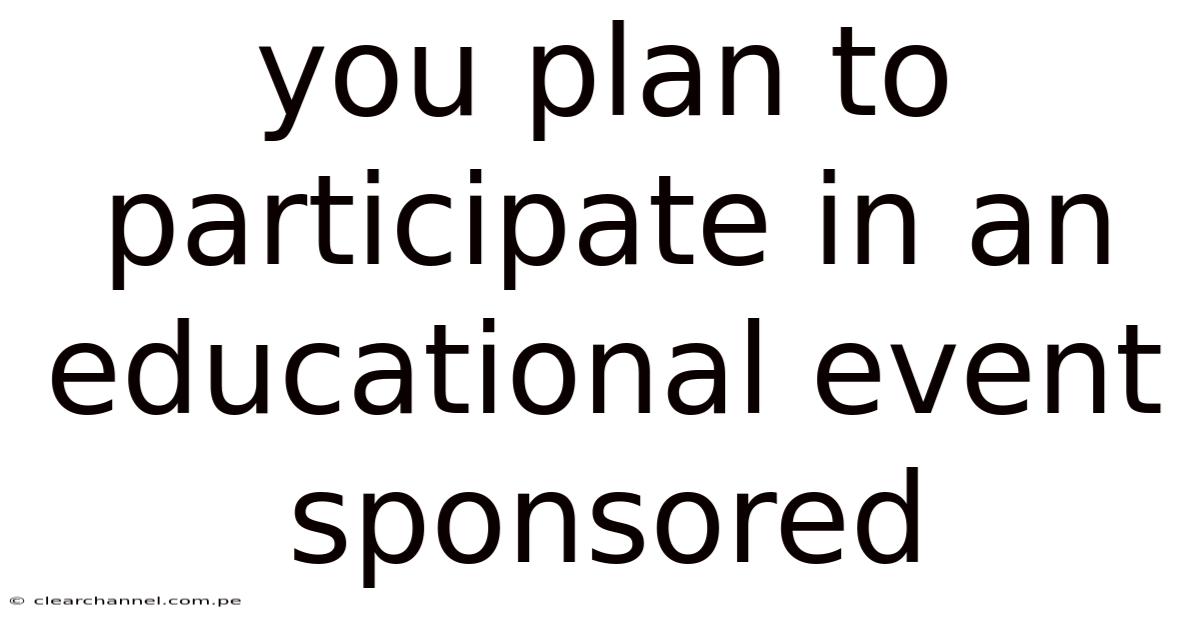 You Plan To Participate In An Educational Event Sponsored